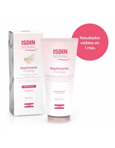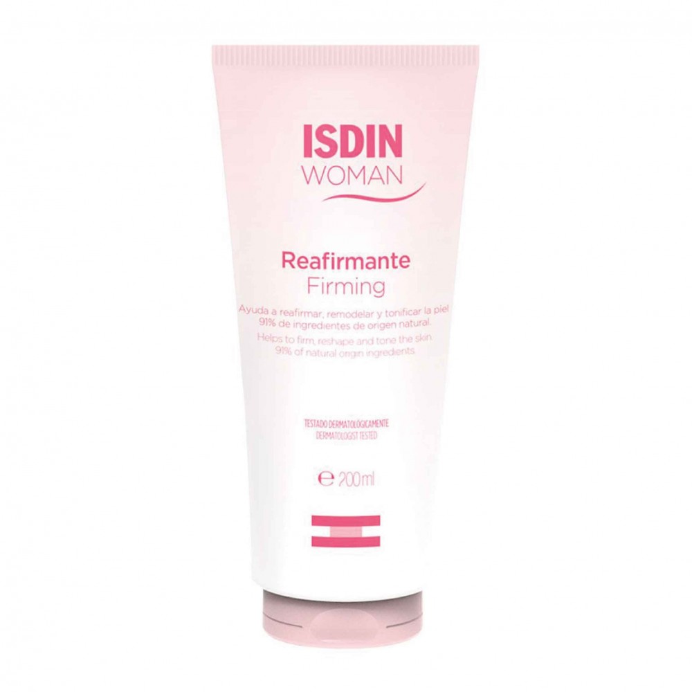 Isdin Woman Crema Reafirmante X 200ML crema corporal reafirmante de rápida absorción con aceite de rosa mosqueta, proteasyl y centella asiática. Hidrata intensamente y mejora la firmeza y apariencia de la piel. Resultados visibles en un mes.